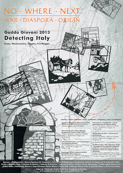 The Montecassino installations and various other Gadda Giovani exhibits including books, posters and T-shirts travelled on to the Venice Biennale Fringe, where they remained on display at the Rolak Gallery, Giudecca, from 29 May to 31 August 2013. The Montecassino Winners were instead re-uninted for a Gadda Giovani Special hosted by Pordenonelegge, 20 September 2014.