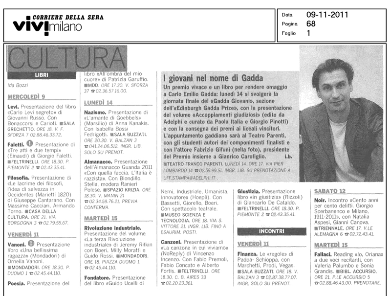 - Gadda Giovani 2011 – Milan Finals, with book launch